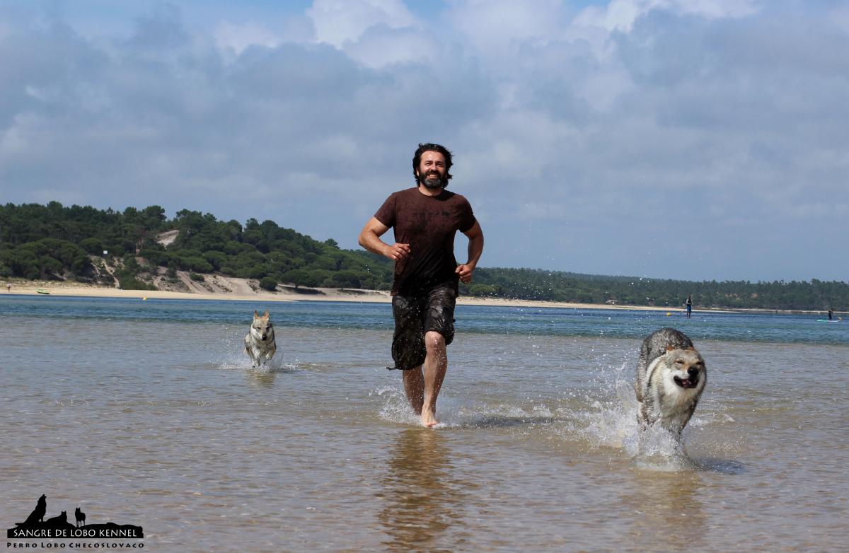 Pero sobre todo fueron los dos perros lobos checoslovacos los que disfrutaron como locos al quemar toda la energía que tenían acumulada al poder correr y nadar en libertad.